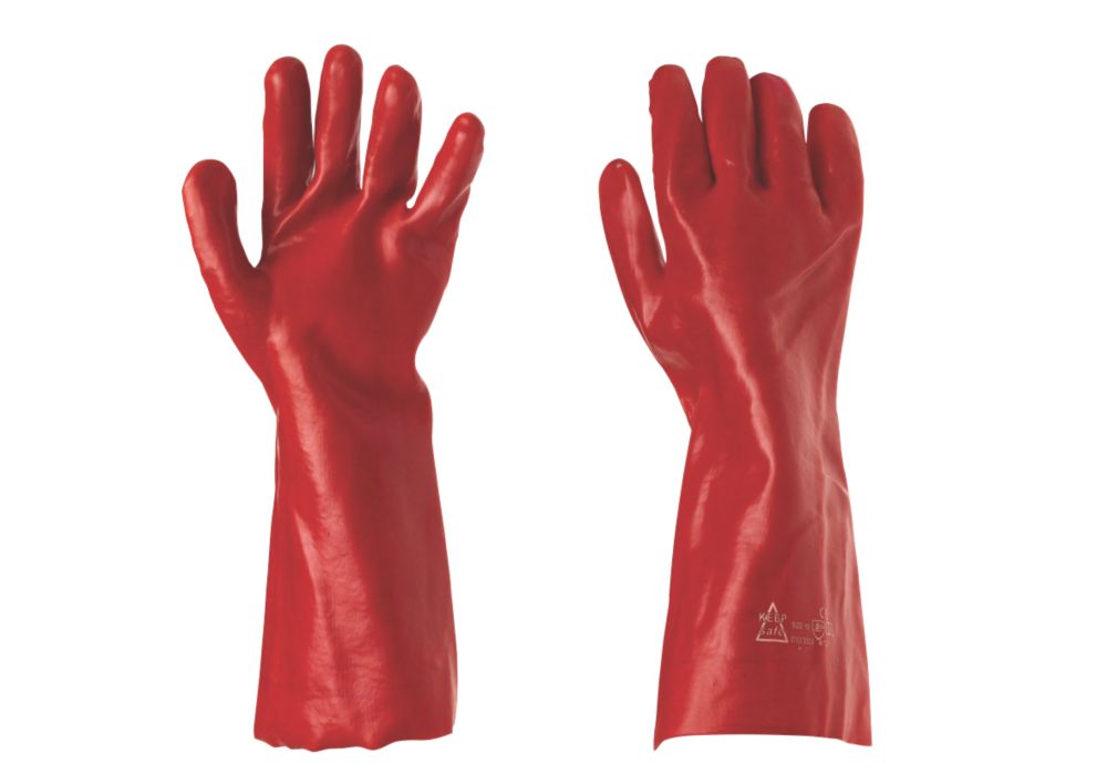 Keep Safe Pvc 16 Gauntlets Red Large Mechanics Gloves Screwfix Com