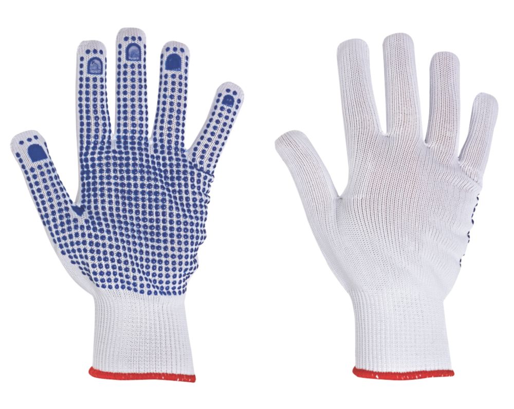 Site 100 Pvc Dot Gripper Gloves White Large Work Gloves Screwfix Com