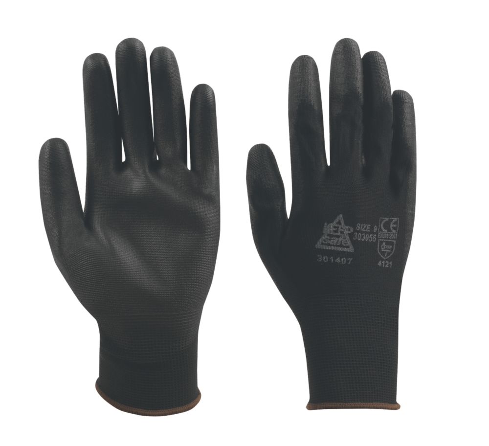 Keep Safe Pu Palm Gloves Black Large Mechanics Gloves Screwfix Com